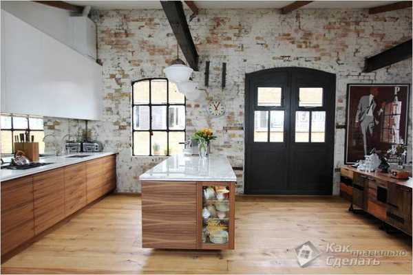 Лофт. Если хотя бы одна стена напоминает кирпичную кладку, значит, интерьер оформлен именно в этом стиле. Он предполагает наличие металлических аксессуаров, отсутствие лишних деталей, приглушенные цвета. Подойдет серый ламинат и все его модификации — кварц, гранит, серебро, беленый дуб, камень.