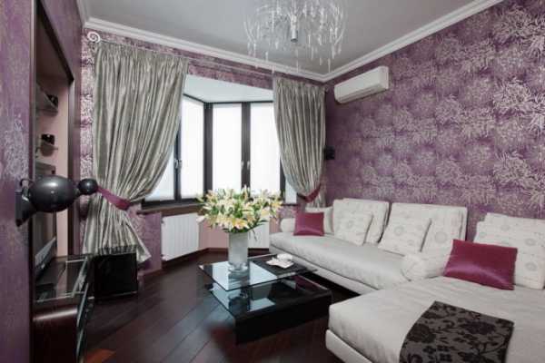 Интересное решение — комбинировать темно-коричневый и фиолетовый. Смелое сочетание подойдет только для просторных комнат, в которых много света. Продумайте и дополнительное освещение в вечернее время: добавьте светодиодных светильников, которые создадут ощущение уюта.