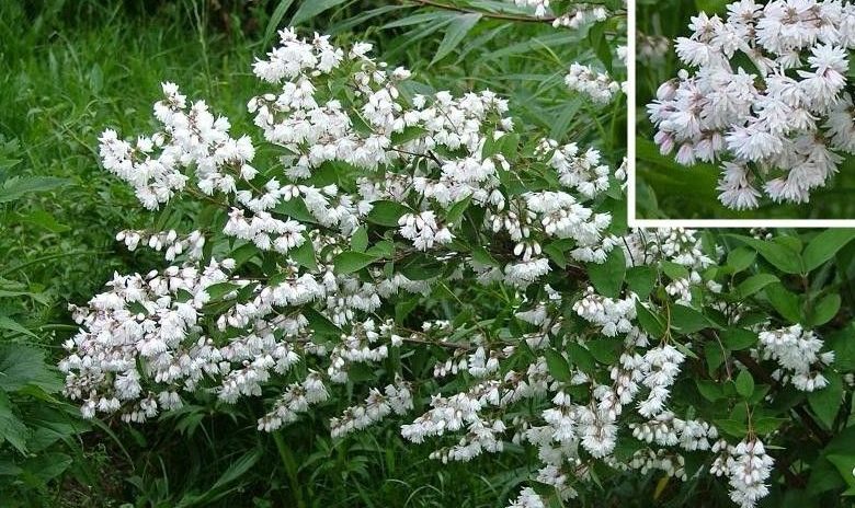 Культивировать в средних широтах его стали не так давно. В зависимости от вида каждый сорт различается размерами, формами, окрасом листьев и цветов. Куст может быть раскидистым либо прямостоящим. Вырастают некоторые виды до 4 м в длину. Куст, который еще не зацвел, внешне очень схож с жимолостью. Цветы не обладают каким-либо ароматом.