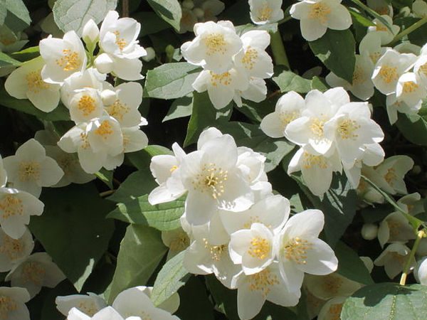 Культура относится к листопадным растениям. Кусты не очень густые, но изящные и привлекательные. В высоту достигают до 2,5 м, в регионах суровой зимы может вымахать и до 4 м. Цветет чубушник белыми, ароматными соцветиями, но встречаются среди кустарников сорта, цветы которого полностью лишены запаха.