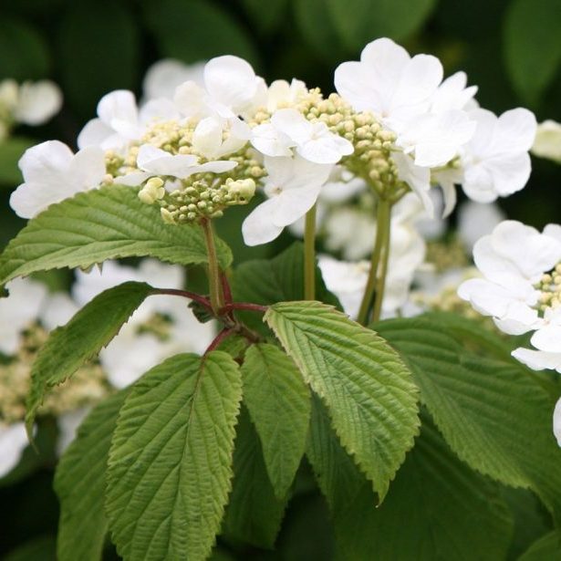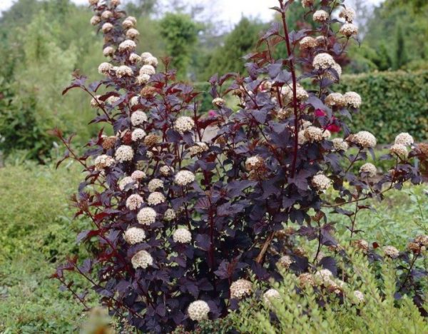 - пузыреплодник калинолистный. Вырастает листопадный кустарник до 3 м. Зацветает культура в июне. Листья с одной стороны зеленые, с другой более светлые. Осенью окрашиваются в желтый цвет. Очень красивый кустарник, у которого привлекательны не только цветы, но и плоды, и сама крона растения;