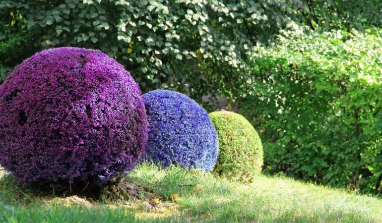 - Яркие и эффектные кустарники следует выделять на фоне зеленых или вечнозеленых представителей.