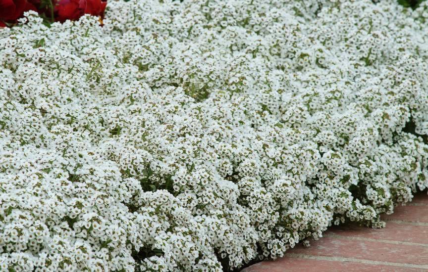 Алиссум морской. Как и большинство многолетников, относится к цветам, которые цветут всё лето. Соцветия алиссуима способны выдержать даже первые заморозки.
