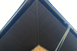 Проемы, софиты и водостоки можно делать контрастного оттенка или в тон цоколя.