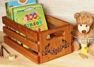 В этой идее тоже нет ничего сложного. Главное — придумать оформление ящика и для удобства присоединить к нему колесики.