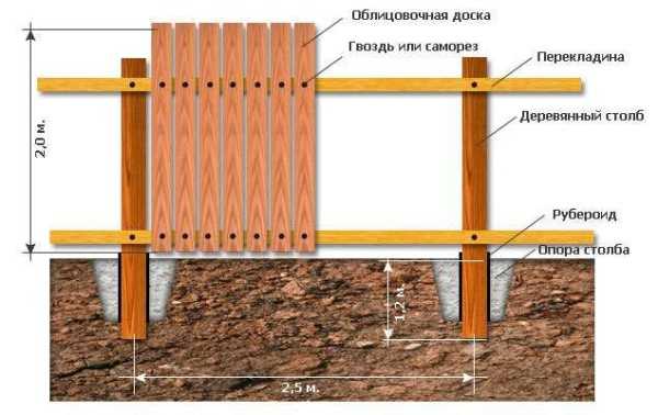 Схема деревянного забора из вертикально прибитых досок — штакетника