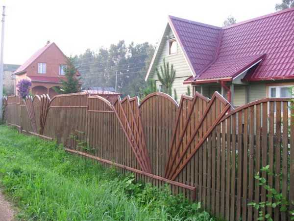 Простой штакетник из пропитанных тонирующим антисептиком досок смотрится солидно
