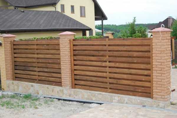 Очень привлекательно смотрится штакетник, установленный на каменную основу.