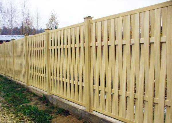 Но если подойти к процессу творчески, то даже из ровных тонких планок можно сделать красивый деревянный забор: прибивая под разными углами.