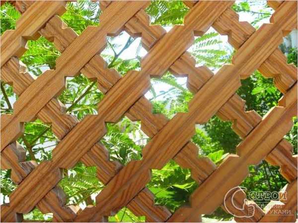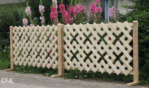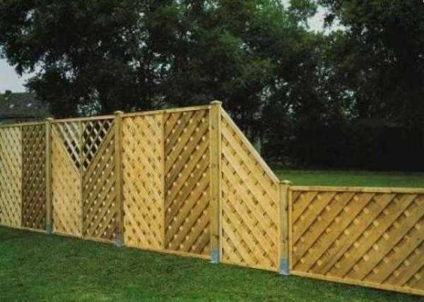 Из тонких, и не очень, планок делают самые разнообразные решетки: с разным углом, частотой расположения планок и т.д. Эти ограды играбт скорее декоративную роль и используются или для ограждения внутри — вод воре, в саду — или для парадного входа — чтобы обозначить границы, но не закрывать красоту.