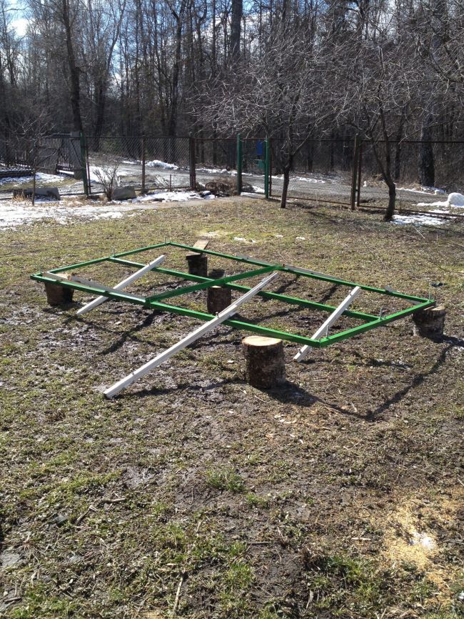 Каркас будущего вольера сваривается из металлического уголка, окрашивается.