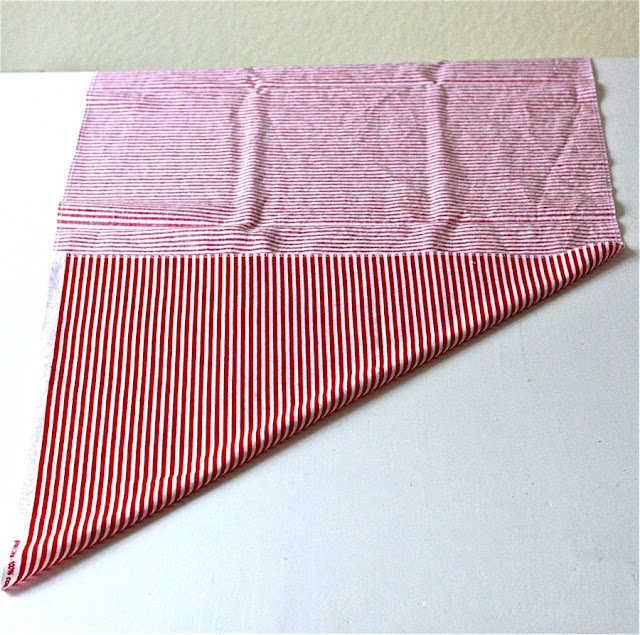 Поместите этот треугольник внизу слева, рядом с другим куском ткани (полосы на ткани помогают совмещать все).