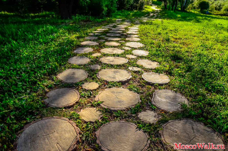 Дорожки в саду можно делать из чего угодно. Главное, чтобы ходить по ним было удобно и прослужили они подольше. Дерево – отличный материал для строительства дорожек своими руками.