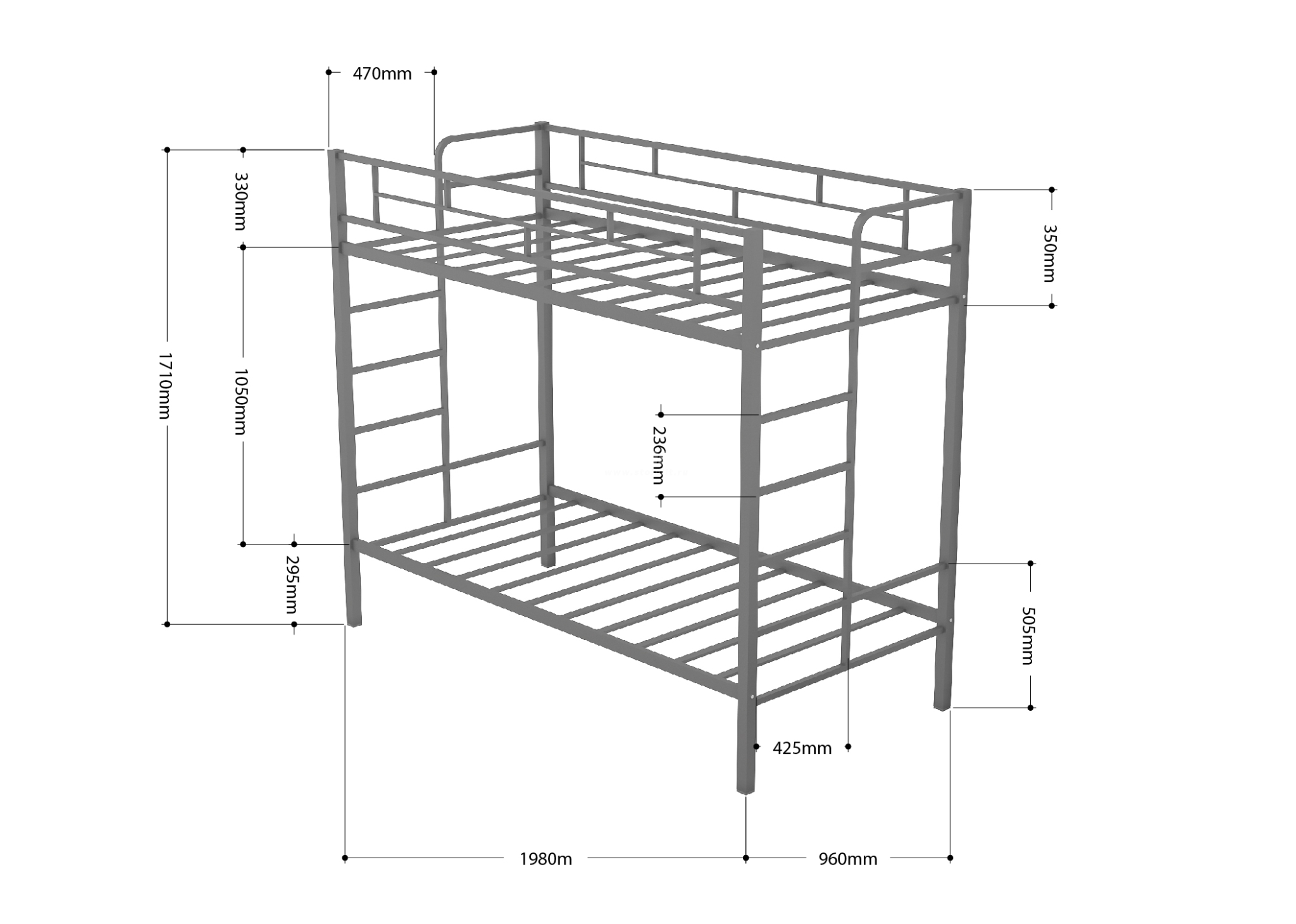 Это современная двухъярусная кровать с очень интересным дизайном. По сравнению со многими стандартными моделями, рама соединяет кровати в центре, оставляя концы и углы плавающими и свободными от опорных стержней.Это создает ощущение простора и придает кровати легкий вид. Каркас в данном случае металлический, что позволяет ему быть особо прочным и обеспечивать необходимую поддержку конструкции. Металлическая отделка подходит к современному стилю кровати и добавляет дизайну универсальности. Каждая из двух коек имеет ограничение по весу в 400 фунтов.