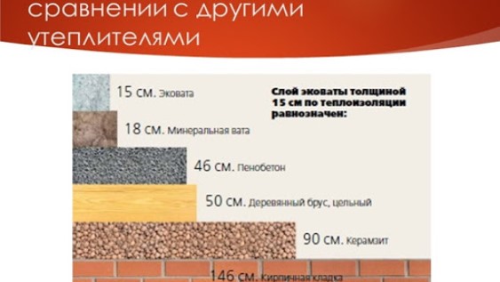 Целлюлозная вата по своим тепло и звукоизоляционным характеристикам может «затмить» некоторые привычные строительные материалы. Пятнадцати сантиметровый слой эковаты соответствует: