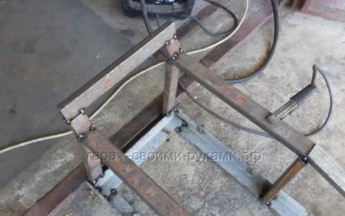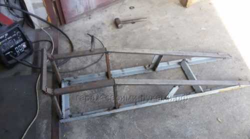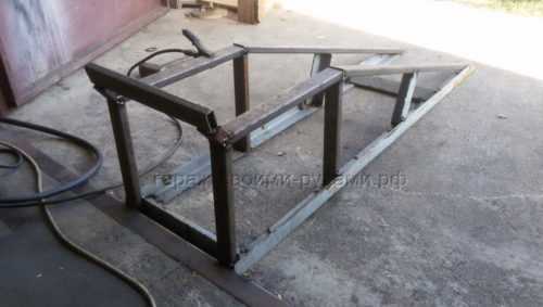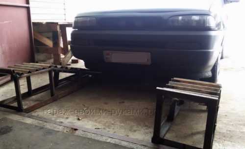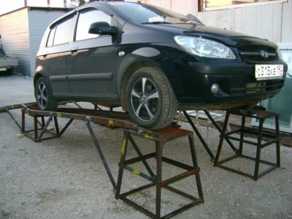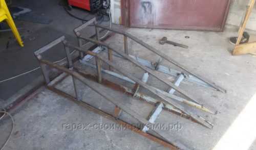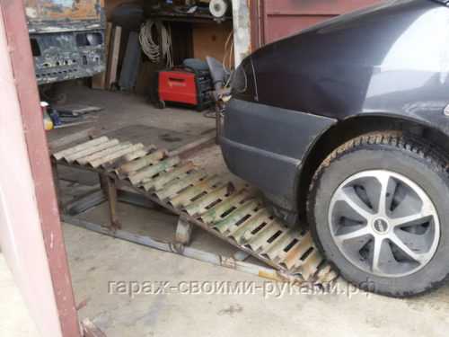 Есть и другие варианты изготовления данной конструкции, одним из самых распространенных и экономных вариантов является изготовление металлической конструкции для частичного погружения автомобиля. Большим достоинством данного приспособлением является то, что оно не заберет много места в вашем гараже, кроме того, вы можете перенести ее из гаража на улицу или в другое помещение с жесткой поверхностью пола. Для ее изготовления вам понадобятся железные уголки и металл для платформы, это может быть как арматура, так и цельные листы металла. В виде исключения вы можете использовать и деревянные материалы, однако, перед их использованием убедитесь в их сохранности и прочности.