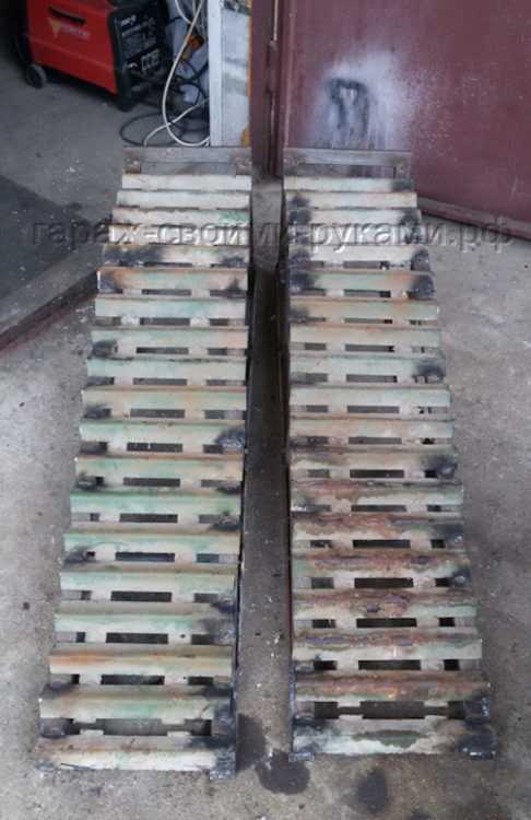 Важное напоминание! При изготовлении конструкции для эстакады позаботьтесь и об ограничителях, которые не позволят автомобилю заехать дальше, чем необходимо или скатиться назад. Ограничители могут быть как съемными, так и задвижными.