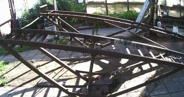 - Металл. Для ее изготовления понадобится арматура (диаметр 1,2 см), металлопрокат, инструменты, крепеж. Сначала нужно собрать четыре стойки основания высотой 0,5 м. Боковые стороны должны иметь форму трапеции, и присоединяться поперечинами размером 64х6 см. Мостики для заезда изготавливаются из арматуры и уголков размером 40х5 см, и выполняются в виде лесенки. Всего нужно изготовить 4 моста. Детали конструкции соединяются между собой болтами.