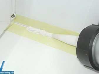 - на участок, где будет находиться силикон, с двух сторон клеят малярный скотч, что предотвратит попадание материала на чистую поверхность;