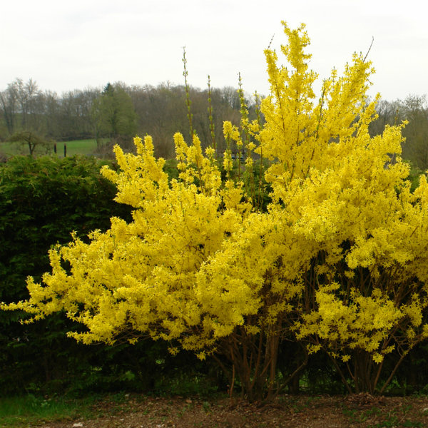 Эта форзиция любит солнце, зимоустойчивая. Превосходно размножается с помощью черенков.
