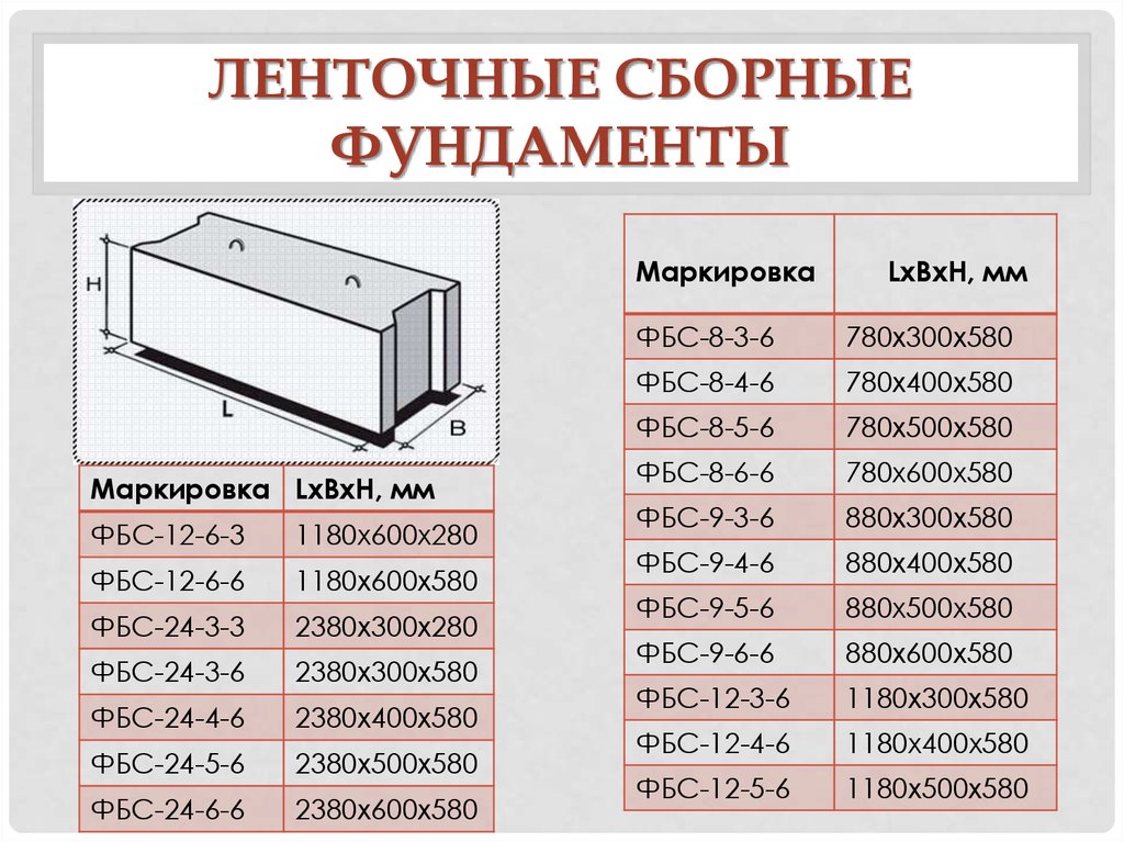 Размеры блоков ФБС для фундамента: разновидности и размерность