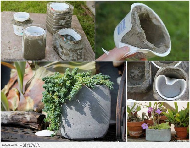 Раньше я думала, что из цемента можно изготовить только большие вазоны и то на предприятии. Но потом я увидела потрясающие по своей красоте и оригинальности кашпо мастеров из Интернета. И мой мир перевернулся. Я тоже захотела самостоятельно изготовить такие цветочные горшки. Сейчас я вам набросаю фотки с понравившимися мне идейками.