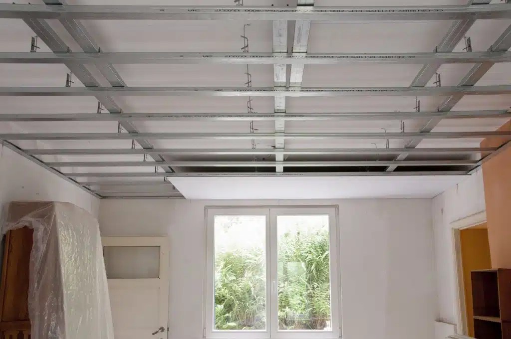 Один тип подвесного потолка состоит из акустических потолочных плит (ACT) и системы сеток из палочек. Этот тип системы, иногда называемый накладным потолком, универсален, долговечен и экономичен.
