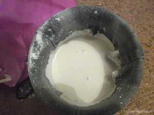 Нужно добавить воды и перемешивать смесь, пока она не будет по консистенции напоминать сметану или майонез.- Необходимо оставить смесь на несколько минут на воздухе, чтобы она приняла подходящий для заливки формы вид.