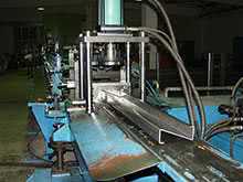 Для изготовления небольших связующих элементов стеллажных конструкций используется автоматическая линия АЛШ состоящая из размотчика, кривошипного пресса и валковой подачи, совмещенной с правильной машиной изготовленной в 2012 году.