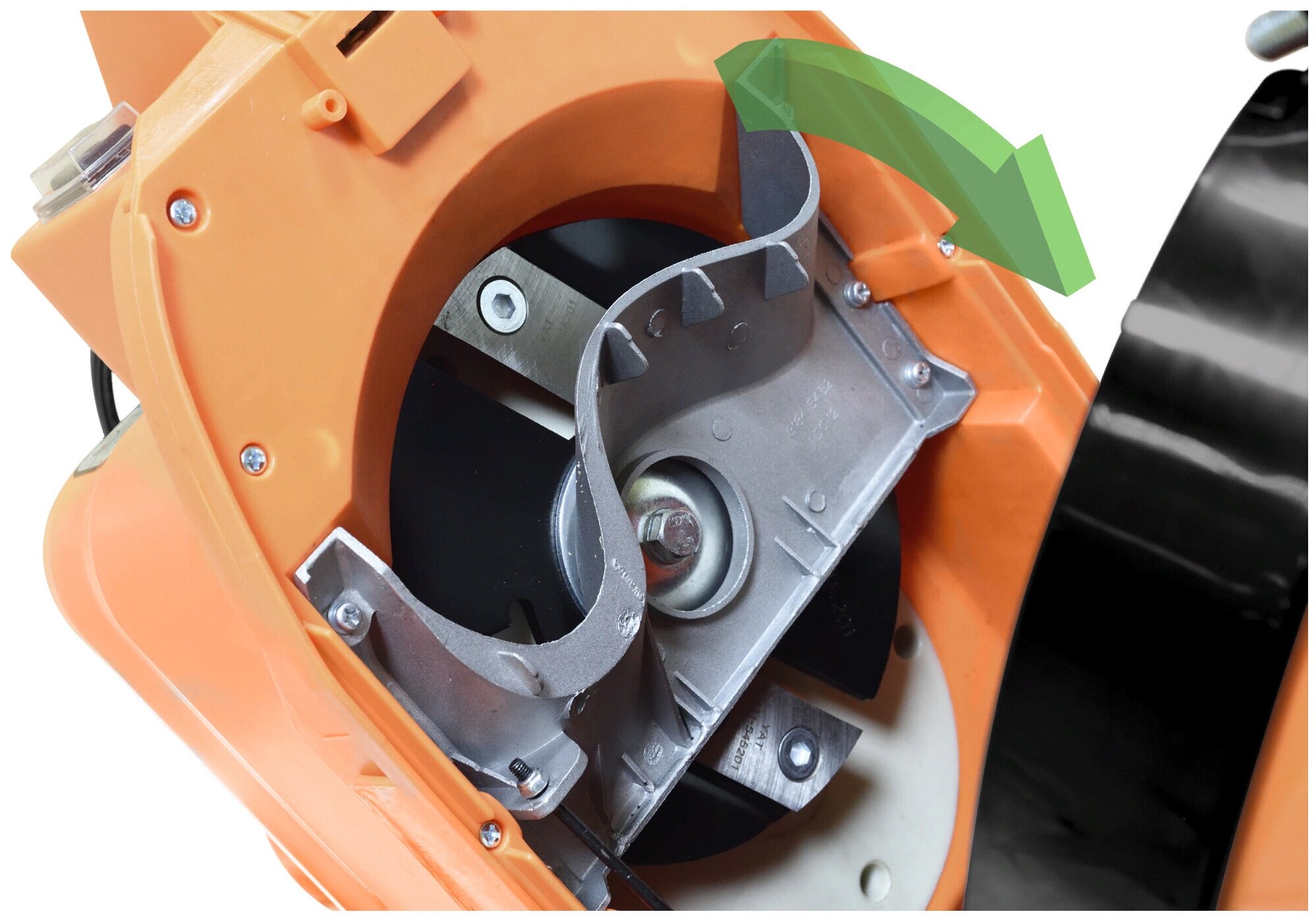 Высокопроизводительный универсальный чиппер GE 250 оснащен электродвигателем мощностью 2,5 кВт и запатентованной режущей системой Multi-Cut 250.