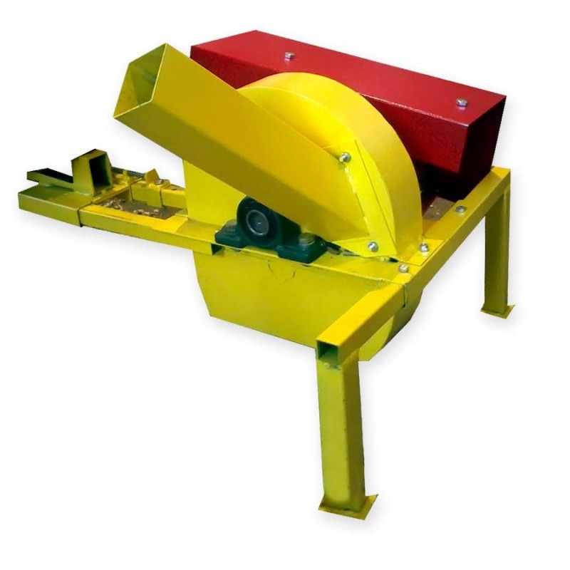 Измельчитель имеет довольно внушительные габариты, и представляет собой металлическое устройство, с одной стороны которого имеется открытый бункер, предназначенный для забрасывания отходов. Внутри него имеется система ножей или шестерней, превращающих ветки деревьев и растения в щепу. После этого стружка выбрасывается через специальную трубку.