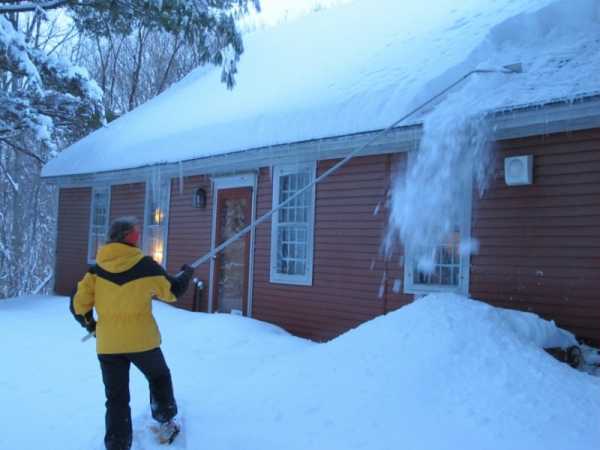 С помощью нехитрого приспособления можно убрать снег с крыши дома, беседки, навеса, гаража или сарая. Производители выпускают специальный снегоуборочный инвентарь — скреперы или скребки — с металлической телескопической ручкой, полная длина которой может достигать 6 м.