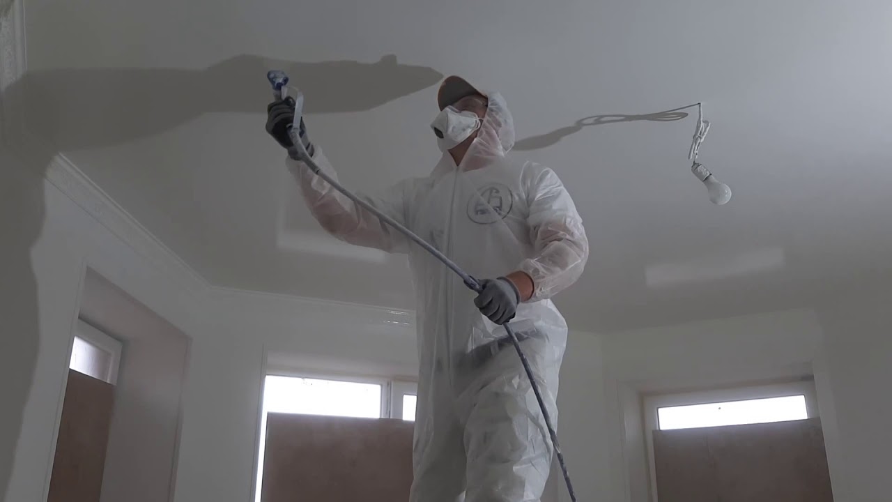 Как красить потолок краскопультом?