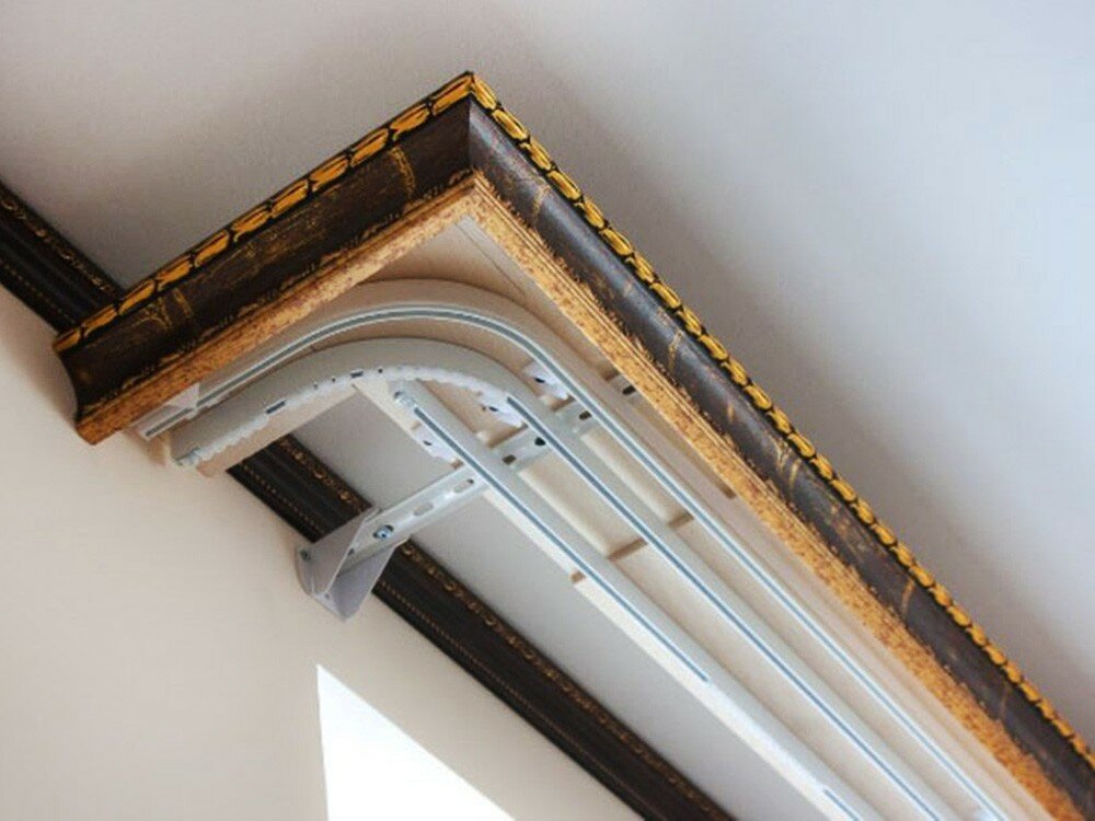 Конструкция этих изделий бывает различной в зависимости от их предназначения, поэтому и способы крепления несколько разнятся. Большинство моделей потолочных карнизов изготавливают из прочного ПВХ, но некоторые дополнительно усилены металлическими деталями.