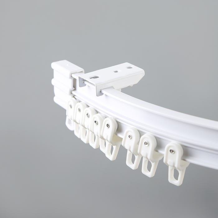 Крючки-держатели предварительно должны быть вставлены в пазы направляющих, а на концах карниза устанавливаются заглушки, предотвращающие выпадение крючков.