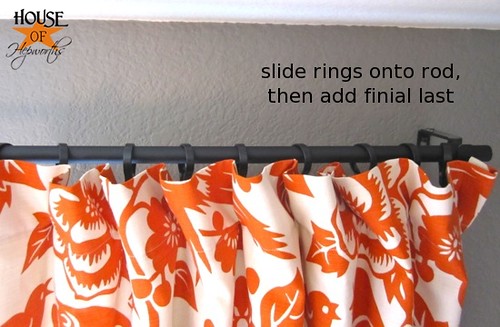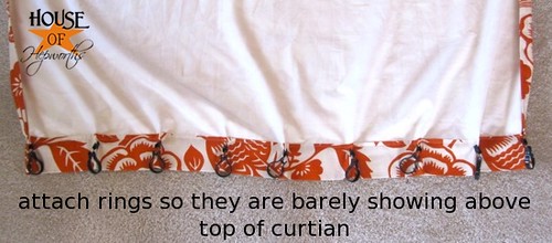 Во-первых, положите занавеску на пол и положите кольца под (над?). Вы хотите убедиться, что вы получите интервал даже. Я сглазил этот шаг. Вам не нужно быть абсолютно точным здесь.