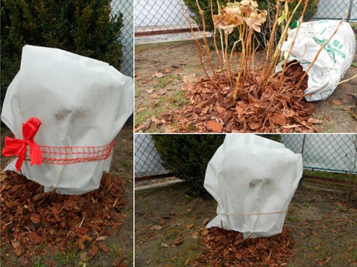 Остается лишь надежно укрыть гортензию поверху. Чем – уже отмечено.
