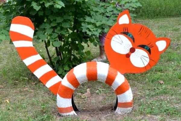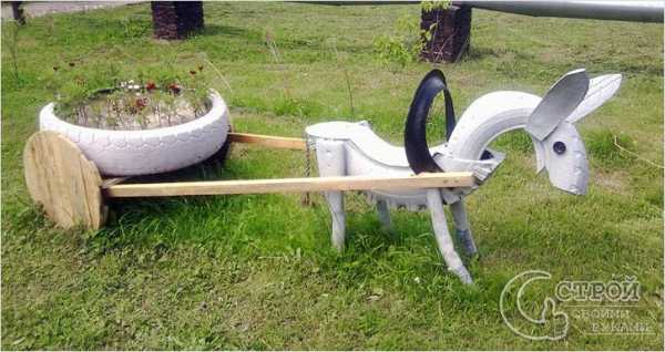 Из автопокрышек прекрасно получаются разнообразные персонажи мультфильмов и сказок, всякого рода животные и птицы.