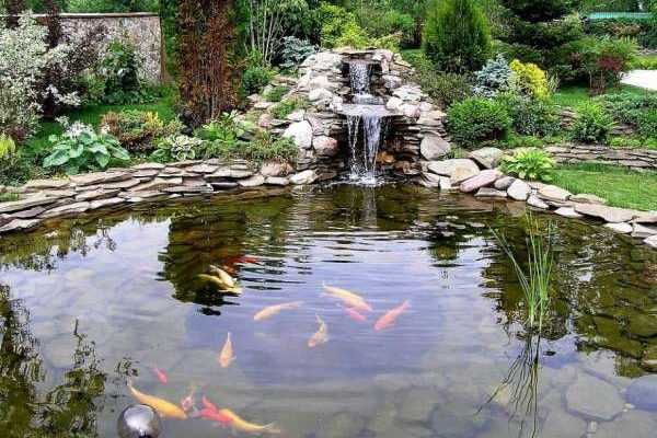Водопад, фонтан, бассейн – главные украшения двора в летний сезон
