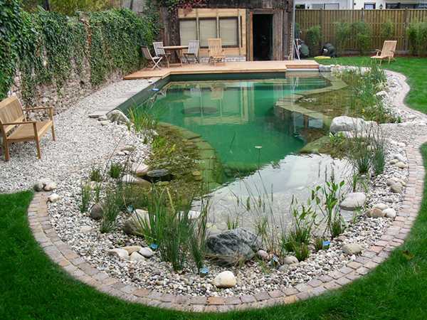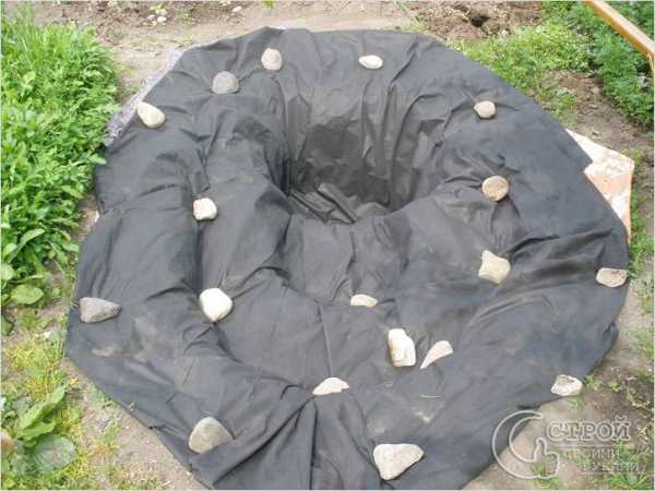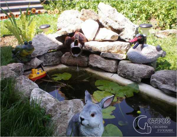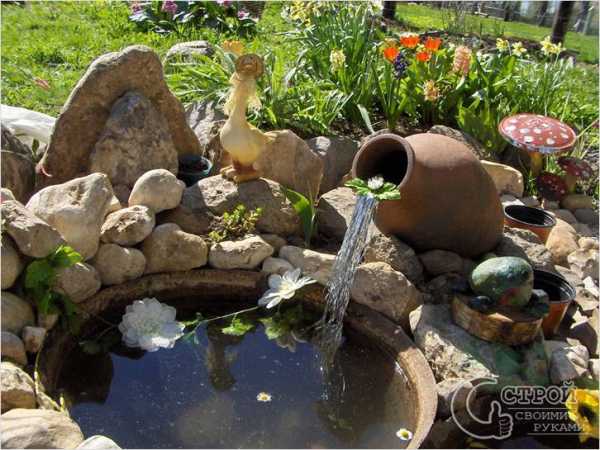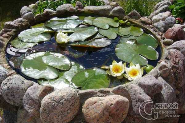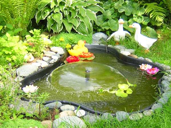 Когда загородный участок большой, то можно соорудить бассейн или многоуровневый фонтан. А что же делать, если сад маленького размера, а иметь водоем очень хочется? В этом случае достаточно будет вырыть необходимого размера яму и установить в нее ванну или любую пластиковую емкость. Если ни ванны, ни емкости нет, можно просто использовать полиэтилен. Выстилаем дно пленкой и заливаем водой. Края можно красиво оформить цветниками или камушками, галькой, небольшими булыжниками.