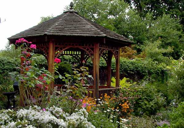 Одна из самых обязательных вещей в деле украшение двора частного дома своими руками — это беседка. Беседки могут быть разными — открытыми, закрытыми, пристроенными к дому. Это могут быть тенты и шатры, палатки.