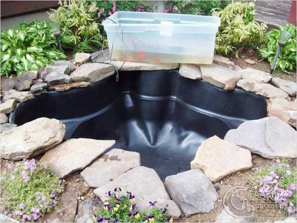 Обратите внимание! Не устанавливайте подобный водоем на солнечном участке, вода будет быстро испаряться, и в пруду появится тина.