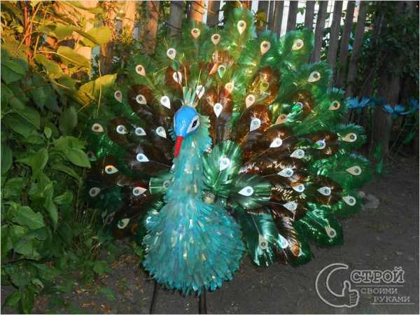 Кстати, обычные пластиковые бутылки являются дешевым и доступным в применении материалом, из которого можно создать оригинальный декор для дачной композиции.