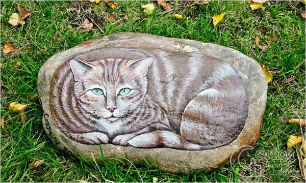 Зебра, нарисованная на камнеОбратите внимание! Очень эффектно смотрятся расписанные камни округлой формы. Из них можно сделать оленят, божьих коровок, ежиков и много еще чего, главное, проявить фантазию.