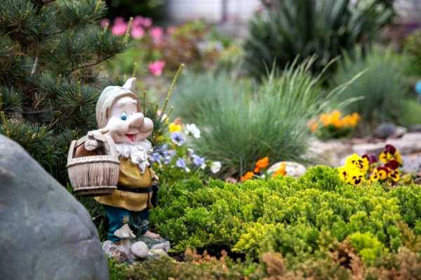 Теневые участки сада, где растительности мало, прекрасно дополнят соломенные чучела, статуэтки гномов и скульптуры домовых. Если участок небольшой, то и фигуры, соответственно, должны быть миниатюрными. В саду большой площади и статуэтки можно сделать крупнее.