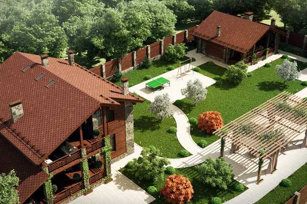 Классическая планировка двора частного дома обычно включает в себя деревянную беседку, с резными элементами. Обустроить двор частного дома при помощи беседки проще простого!