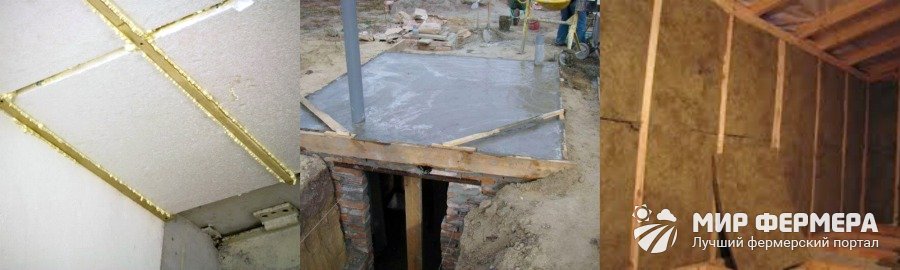 Над котлованом делают перекрытие из деревянных досок или брусьев. Сверху укладывают слой теплоизоляции (глину, керамзит или плотный грунт), а также обустраивают утепленный люк. Кроме того, внутри необходимо обустроить приточную вентиляцию, проделав в одно из стен отверстие на уровне земли.
