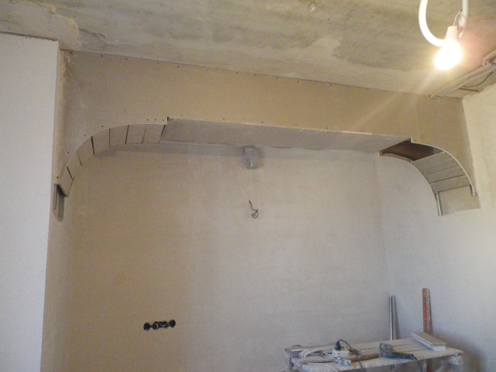 Ажурные балки для вогнутых натяжных потолков будут уместны и в частном доме, и в квартире с высокими стенами.