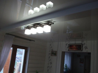 Такой потолок дополнятся приборами освещения, подчеркивающими функциональные зоны в интерьере.
