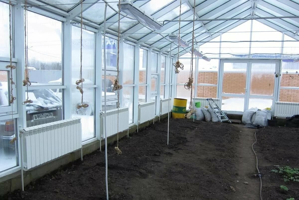 Для получения ранних весенних урожаев в теплице из поликарбонатарекомендуется оборудовать обогрев .